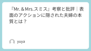 2005年公開の映画『Mr.&Mrs.スミス』は、ブラッド・ピットとアンジェリーナ・ジョリーという当時のスター二人の共演で大きな話題を呼びました。一見、スタイリッシュなアクションコメディとして捉えられがちな本作ですが、その奥には「夫婦」「信...