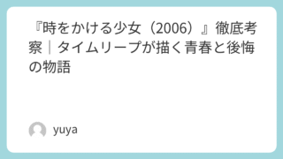 細田守監督によるアニメーション映画『時をかける少女』(2006年)は、筒井康隆の同名小説を原案としつつも、現代的なアプローチで全く新しい物語として昇華され、多くの観客の心を打ちました。特に、時間をテーマにしながらも青春の儚さや後悔、成長を丁...