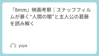 『8mm』映画考察|スナッフフィルムが暴く“人間の闇”と主人公の葛藤を読み解く 映画『8mm』(1999年)は、ニコラス・ケイジ主演のサスペンススリラーであり、表向きには「失踪した少女の行方」を追う犯罪捜査映画ですが、実際には“人間はどこまで残酷になれるのか”“映像にはどれほどの暴力性が宿るのか”という深い問いを突きつ... 2025.11.20 Uncategorized