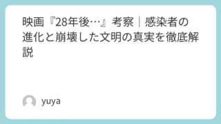 映画『28年後…』考察|感染者の進化と崩壊した文明の真実を徹底解説 『28日後…』『28週後…』と続いた“レイジ・ウイルス”シリーズから、ついに約17年ぶりとなる新作『28年後…』(28 Years Later)が公開されました。前作からの大幅な時間経過、感染者の進化、文明崩壊後の世界、そして新たな主人公ス... 2025.11.21 Uncategorized