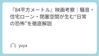 『84平方メートル』映画考察|騒音・住宅ローン・閉塞空間が生む“日常の恐怖”を徹底解説 映画『84平方メートル』は、韓国の集合住宅を舞台にした心理スリラーであり、騒音問題や住宅ローン、階層格差といった“現代の生活が抱えるリアルな恐怖”を鋭くえぐり出す作品です。「狭い空間」「消えない物音」「逃れられない生活圧」——これらは物語を... 2025.11.21 Uncategorized