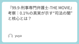 『99.9-刑事専門弁護士-THE MOVIE』考察|0.1%の真実が示す“司法の闇”と核心とは? 映画『99.9-刑事専門弁護士-THE MOVIE』は、ドラマ版から続く “0.1%の真実” を追い求める弁護士・深山大翔が、新たな難事件に挑む法廷エンターテインメントです。本作は単なるスピンオフ映画ではなく、司法制度の矛盾や「事実」と「真... 2025.11.21 Uncategorized