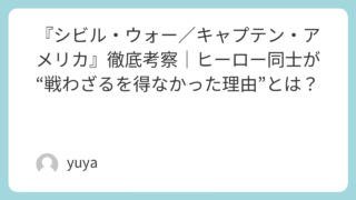 『シビル・ウォー/キャプテン・アメリカ』徹底考察|ヒーロー同士が“戦わざるを得なかった理由”とは? 映画『シビル・ウォー/キャプテン・アメリカ』は、MCUの中でも特に議論を呼んだ作品です。「ヒーロー同士が戦う」というショッキングな構図だけでなく、「責任」「正義」「国家」「自由」など、現代社会が抱えるテーマを鋭く突きつける点が、多くのファン... 2025.11.21 Uncategorized