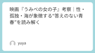 映画『うみべの女の子』考察|性・孤独・海が象徴する“答えのない青春”を読み解く 映画『うみべの女の子』は、浅野いにおによる同名漫画を原作とした青春映画です。性・孤独・承認欲求・依存関係といった“救いのないリアリティ”を正面から描いており、観る人の胸に重たい余韻を残します。本作は単なる恋愛映画ではなく、10代が抱える「大... 2025.11.21 Uncategorized