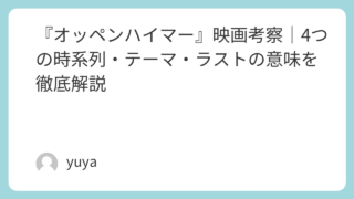『オッペンハイマー』映画考察|4つの時系列・テーマ・ラストの意味を徹底解説 クリストファー・ノーラン監督による映画『オッペンハイマー』は、単なる人物伝でも、歴史再現映画でもありません。これは「世界を変えた科学者の栄光と破滅」、そして「私たち自身の倫理観」を問い直す作品です。高度な専門知識や歴史背景を知らなくても、作... 2025.11.21 Uncategorized