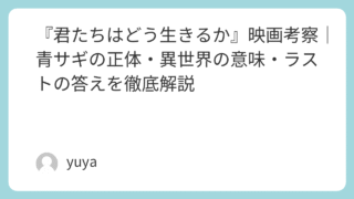 『君たちはどう生きるか』映画考察|青サギの正体・異世界の意味・ラストの答えを徹底解説 宮崎駿監督の最新作『君たちはどう生きるか』は、ストーリーを“説明しない”独特の構造を持つため、鑑賞後に強い余韻と多くの疑問を残す作品です。「青サギはどういう存在だったのか?」「異世界は何を象徴していたのか?」「眞人が塔を継がなかった理由とは... 2025.11.25 Uncategorized