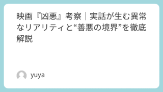 映画『凶悪』考察|実話が生む異常なリアリティと“善悪の境界”を徹底解説 映画『凶悪』は、死刑囚の告発によって暴かれる殺人事件を追う記者の視点を通し、“人間の闇”と“社会の歪み”を徹底的に描き切った衝撃作です。ノンフィクション原作をもとにした異常なリアリティ、登場人物の心理構造、そしてラストに込められた倫理的メッ... 2025.11.27 Uncategorized