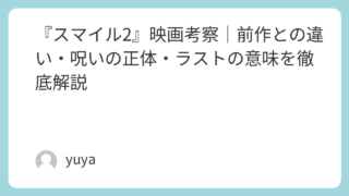 『スマイル2』映画考察|前作との違い・呪いの正体・ラストの意味を徹底解説 ホラー映画『スマイル2』は、前作『スマイル』が描いた“笑顔の呪い”をより大衆的なスケールへと拡大させ、恐怖表現だけでなく「名声」「トラウマ」「観客との共犯性」というテーマ性を深めた続編です。前作を観た人ほど、本作がどこを引き継ぎ、何を更新し... 2025.11.19 Uncategorized