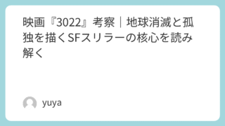 映画『3022』考察|地球消滅と孤独を描くSFスリラーの核心を読み解く SF映画『3022』は、壮大な宇宙空間と閉鎖的なステーションを舞台に、極限状態に置かれた人間の精神と選択を描く意欲作です。地球の消滅という衝撃的な状況から始まり、宇宙ステーション「パンゲア」に取り残された4人のクルーが、絶望と希望の間で揺れ... 2025.11.19 Uncategorized