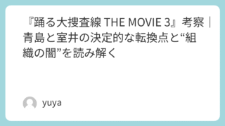『踊る大捜査線 THE MOVIE 3』考察|青島と室井の決定的な転換点と“組織の闇”を読み解く 『踊る大捜査線 THE MOVIE 3 ヤツらを解放せよ!』は、青島俊作と室井慎次という“踊る”シリーズの二軸が抱えてきた矛盾を一気に噴出させた作品です。一見するとコミカルな事件に見えながら、その裏に潜むのは「巨大化した警察組織の構造的な歪... 2025.11.19 Uncategorized