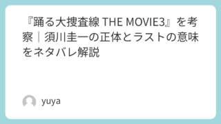 『踊る大捜査線 THE MOVIE3』を考察|須川圭一の正体とラストの意味をネタバレ解説 『踊る大捜査線 THE MOVIE3 ヤツらを解放せよ!』は、新湾岸署への引っ越しという大きな節目を舞台に、8つの事件が同時進行で絡み合う劇場版第3作です。青島俊作が係長として現場を背負う立場になったこともあり、これまでのシリーズ以上に「現... 2025.11.19 2026.03.06 Uncategorized
