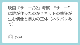 映画『サニー/32』考察|“サニー”は誰が作ったのか?ネットの熱狂が生む偶像と暴力の正体(ネタバレあり) 「サニー」は、ひとりの加害者の名前ではない。むしろそれは、誰かが“見たい”と願った瞬間に立ち上がり、面白がった回数だけ肥大化していく——現代のネット社会が生んだ“偶像”だ。映画『サニー/32』は、誘拐監禁というジャンルの枠を借りながら、私た... 2025.11.19 2026.03.05 Uncategorized