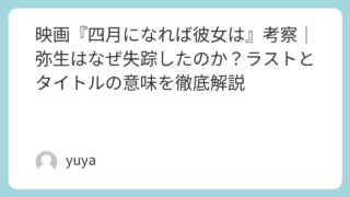 映画『四月になれば彼女は』考察|弥生はなぜ失踪したのか?ラストとタイトルの意味を徹底解説 映画『四月になれば彼女は』は、美しい映像と静かな語り口の中で、「愛はなぜ消えてしまうのか」という切実な問いを描いた作品です。元恋人・春から届く手紙、婚約者・弥生の突然の失踪、そして藤代がたどる愛の記憶。物語にはいくつもの謎が散りばめられてお... 2025.11.19 2026.03.06 Uncategorized