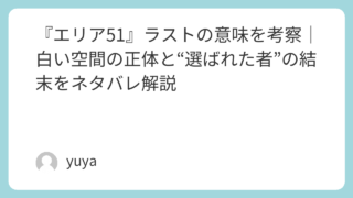 『エリア51』ラストの意味を考察|白い空間の正体と“選ばれた者”の結末をネタバレ解説 映画『エリア51』は、アメリカ最大級の都市伝説として知られる極秘施設“エリア51”を題材にしたSFホラーです。若者たちが禁断の場所へ足を踏み入れるというシンプルな物語でありながら、本作にはラストの意味がわかりにくい、登場人物の行動にどんな意... 2025.11.19 2026.03.06 Uncategorized