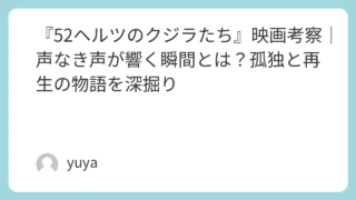 『52ヘルツのクジラたち』映画考察|声なき声が響く瞬間とは?孤独と再生の物語を深掘り 映画『52ヘルツのクジラたち』は、原作小説の持つ静かな痛みと温かさをそのまま映像に落とし込み、“声をあげられない人たち”の物語として多くの観客の心を揺さぶりました。「52ヘルツ」という、人間には届きにくい周波数で鳴き続けるクジラ。このタイト... 2025.11.19 Uncategorized