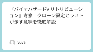 『バイオハザードV リトリビューション』考察|クローン設定とラストが示す意味を徹底解説 『バイオハザードV リトリビューション』は、シリーズの中でも特に“ゲームらしさ”と“SF色”が強く打ち出された作品です。東京やニューヨーク、モスクワを模した実験施設、次々に現れるクローン、そして再登場する人気キャラクターたち――アクション大... 2025.11.19 2026.03.08 Uncategorized