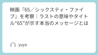 映画『65/シックスティ・ファイブ』を考察|ラストの意味やタイトル“65”が示す本当のメッセージとは 映画『65/シックスティ・ファイブ』は、未来の宇宙船パイロットが“6500万年前の地球”に不時着するという、ユニークな設定が印象的なSFサバイバル映画です。恐竜が登場するスリリングな作品でありながら、その本質は単なるパニック映画ではなく、喪... 2025.11.20 2026.03.08 Uncategorized