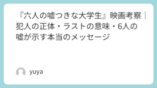 『六人の嘘つきな大学生』映画考察|犯人の正体・ラストの意味・6人の嘘が示す本当のメッセージ 映画『六人の嘘つきな大学生』は、就職活動という身近な題材をベースにしながら、人間の本性や集団心理の怖さを鋭く描いた異色のミステリーです。物語が進むにつれて、6人の大学生それぞれが抱える“嘘”や隠された過去が明らかになり、観る側は何が真実で何... 2025.11.20 2026.03.08 Uncategorized