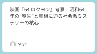 映画『64 ロクヨン』考察|昭和64年の“喪失”と真相に迫る社会派ミステリーの核心 映画「64(ロクヨン)」は、横山秀夫によるベストセラー小説を原作とした、前後編の骨太な社会派ミステリーです。昭和最後のわずか7日間に起きた誘拐事件「ロクヨン」が、14年の時を超えて再び警察組織を揺るがしていく本作は、単なる事件解決ドラマでは... 2025.11.20 Uncategorized