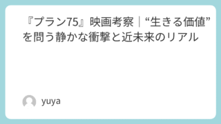 『プラン75』映画考察|“生きる価値”を問う静かな衝撃と近未来のリアル 『PLAN 75(プラン75)』は、少子高齢化が深刻化した近未来の日本を舞台に、“75歳以上なら誰でも国の支援を受けて安楽死を選べる”という制度を描いた作品です。その設定はフィクションでありながら、私たちの現実と地続きに感じられるほどのリア... 2025.11.20 Uncategorized