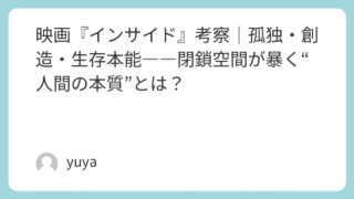 映画『インサイド』考察|孤独・創造・生存本能――閉鎖空間が暴く“人間の本質”とは? 映画「インサイド(INSIDE)」は、豪華絢爛なペントハウスに閉じ込められた一人の盗賊の姿を通して、「生きる意味」「創造とは何か」「孤独と人間性」という普遍的なテーマを描く異色のサスペンス映画です。極限状態に追い込まれながらも創造と狂気のあ... 2025.11.13 Uncategorized