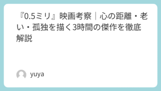 『0.5ミリ』映画考察|心の距離・老い・孤独を描く3時間の傑作を徹底解説 介護、孤独、家族、老い、ジェンダー——これらのテーマを3時間超の濃密なドラマに昇華した、安藤桃子監督の映画『0.5ミリ』。原作と脚本も手がけた安藤桃子の視点は、介護を「制度」ではなく、もっと個人的で生々しく、時にユーモラスな“人間関係の距離... 2025.11.13 Uncategorized