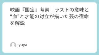 映画『国宝』考察|ラストの意味と“血”と才能の対立が描いた芸の宿命を解説 映画『国宝』は、歌舞伎の世界を舞台にしながら、単なる芸道映画では終わらない圧倒的な人間ドラマとして多くの観客の心を揺さぶる作品です。任侠の家に生まれた喜久雄と、歌舞伎名門の御曹司・俊介。まったく異なる宿命を背負った二人が、芸に人生を捧げるな... 2025.12.01 2026.03.11 Uncategorized