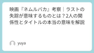 映画『ネムルバカ』考察|ラストの失踪が意味するものとは?2人の関係性とタイトルの本当の意味を解説 映画『ネムルバカ』は、何気ない大学生活の空気感を描きながら、入巣柚実と鯨井ルカという2人の関係の揺らぎを繊細に映し出した青春映画です。女子寮で過ごすゆるやかな日常、音楽を追いかけるルカの夢、そして少しずつ変わっていく2人の距離感――そのすべ... 2026.02.14 2026.03.19 Uncategorized
