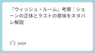 『ウィッシュ・ルーム』考察|シェーンの正体とラストの意味をネタバレ解説 映画『ウィッシュ・ルーム』は、「願いが何でも叶う部屋」という魅力的な設定から始まりながら、やがて人間の欲望や喪失、そして愛情の危うさを描き出していく異色のスリラーです。一見するとシンプルなホラー作品にも見えますが、物語を追うほどに「シェーン... 2026.02.10 2026.03.09 Uncategorized