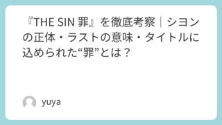 『THE SIN 罪』を徹底考察|シヨンの正体・ラストの意味・タイトルに込められた“罪”とは? 映画『THE SIN 罪』は、ゾンビホラー、オカルト、儀式、そして人間の“原罪”を思わせるテーマが複雑に絡み合う、非常に考察しがいのある作品です。一見すると、廃墟で巻き起こる惨劇を描いたパニックホラーのように見えますが、物語が進むにつれて、... 2026.02.12 2026.03.16 Uncategorized