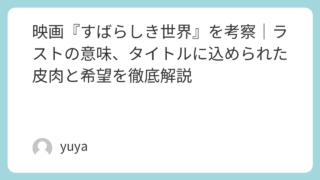【ネタバレ】『楽園』映画考察|犯人は誰か?愛華生存説とラストの意味を徹底解説 映画『楽園』を観終わったあと、「結局、犯人は誰だったのか?」「愛華は本当に生きているのか?」「ラストのY字路は何を示していたのか?」――そんな“答えの出ない違和感”が残った方は多いはずです。本記事では、犯人考察・愛華生存説・ラストシーンの解... 2026.02.09 Uncategorized