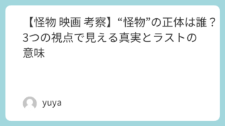 【怪物 映画 考察】“怪物”の正体は誰?3つの視点で見える真実とラストの意味 映画『怪物』は、ひとつの出来事を「母」「教師」「子ども」それぞれの視点で描き直し、観るたびに“真実”の輪郭が変わっていく作品です。是枝裕和監督×坂元裕二脚本という座組が生むのは、犯人探しのミステリーというより、「なぜ人は誰かを怪物だと決めて... 2025.11.13 2026.02.20 Uncategorized