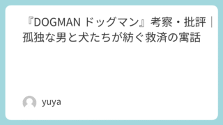 『DOGMAN ドッグマン』考察・批評|孤独な男と犬たちが紡ぐ救済の寓話 リュック・ベッソン監督の最新作『DOGMAN ドッグマン』は、ただの動物映画でも復讐劇でもありません。犬たちと心を通わせる孤独な男・ダグラスの生き様を通して、人間の尊厳、愛、そして社会の残酷さを問いかける異色作です。本記事では、この作品のテ... 2025.10.01 Uncategorized