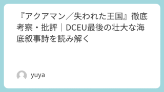 『アクアマン/失われた王国』徹底考察・批評|DCEU最後の壮大な海底叙事詩を読み解く DCユニバース(DCEU)の一区切りとして公開された『アクアマン/失われた王国』は、2018年の前作『アクアマン』の続編でありながら、新たな時代への移行を示す終章でもあります。本作は、海底王国の壮大なスケールと王家の宿命を描いた一大スペクタ... 2025.10.01 Uncategorized