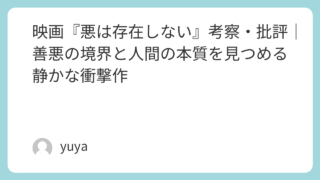 映画『悪は存在しない』考察・批評|善悪の境界と人間の本質を見つめる静かな衝撃作 2023年に公開された濱口竜介監督の最新作『悪は存在しない』は、静謐で詩的な映像美とともに、私たちが抱える倫理や善悪の問題を静かに、しかし鋭く突きつけてきます。一見するとシンプルな田舎の生活風景が、ある日を境に少しずつ歪み始める。その過程で... 2025.10.01 Uncategorized