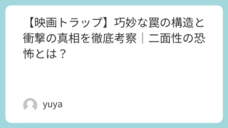【映画トラップ】巧妙な罠の構造と衝撃の真相を徹底考察|二面性の恐怖とは? 近年、日本国内でも高評価を集めた映画『トラップ』は、サスペンス要素とどんでん返しが魅力の作品として注目を浴びています。一見シンプルな人質事件の物語に見えるものの、その裏には巧妙に張り巡らされた“罠”と、“本性を隠す人物たち”の深層心理が隠さ... 2025.10.01 Uncategorized