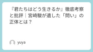 『君たちはどう生きるか』徹底考察と批評|宮崎駿が遺した「問い」の正体とは? スタジオジブリ最新作『君たちはどう生きるか』は、宮崎駿監督が10年ぶりに手がけた長編アニメーションであり、その公開とともに多くの議論を呼んでいます。事前の宣伝をほぼ行わず、タイトルとポスターのみで観客の想像力を喚起させる異例の手法を取った本... 2025.10.02 Uncategorized