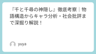『千と千尋の神隠し』徹底考察|物語構造からキャラ分析・社会批評まで深掘り解説!