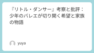 2000年に公開された映画『リトル・ダンサー』(原題:Billy Elliot)は、一人の少年がバレエという芸術を通して、家族や社会の価値観の壁を乗り越えていく姿を描いた作品です。炭鉱町に暮らす労働者階級の少年ビリーが、バレエへの情熱を抱き...