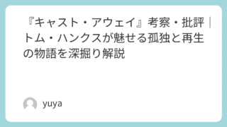 トム・ハンクス主演のサバイバル映画『キャスト・アウェイ』(2000年)は、飛行機事故で無人島に流れ着いた男の極限生活とその後の人生を描いた作品です。一見サバイバル映画に見える本作ですが、実は非常に哲学的で、人間の「孤独」「時間」「希望」とい...